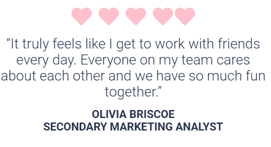 Culture built on encouragement, collaboration, and fun, supported by real employee testimonials.